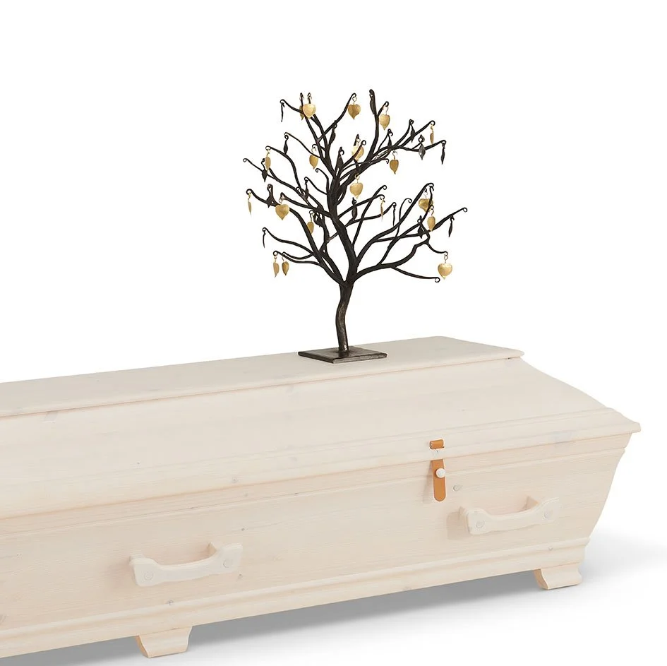 Träden kan levereras i valfri färg enligt RAL-skalan eller klarlackas för en mer rå, naturlig finish. De smyckas med handsmidda löv i mässing, cortén eller rostfritt stål. Löven präglas vid beställning.
