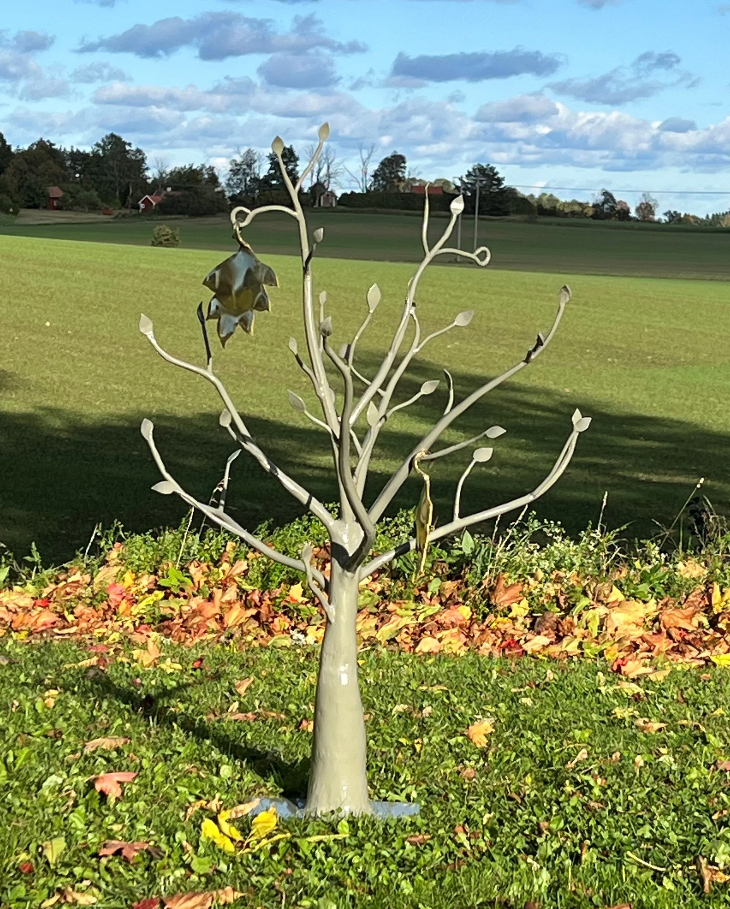Våra minnesträd monteras först på ett stabilt betongfundament och planteras därefter på plats. I priset ingår både fundamentet och pulverlackering i önskad färg, samt transport och montering.